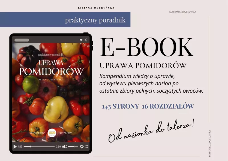 👉 [Kup e-book]Chcesz mieć zdrowe, obficie owocujące pomidory bez zgadywania i stresu? Ten e-book pomoże Ci przejść przez każdy etap uprawy z pewnością i spokojem, nawet jeśli dopiero zaczynasz swoją przygodę z ogrodem. [ zdjęcia poniżej ]Każdy sezon z pomidorami przynosił nowe obserwacje i doświadczenia. Tak powstał ten e-book. Kompendium wiedzy o uprawie, które pokazuje, jak z pasją i cierpliwością stworzyć własną, pomidorową opowieść. Bez względu na to, czy dopiero zaczynasz swoją przygodę...