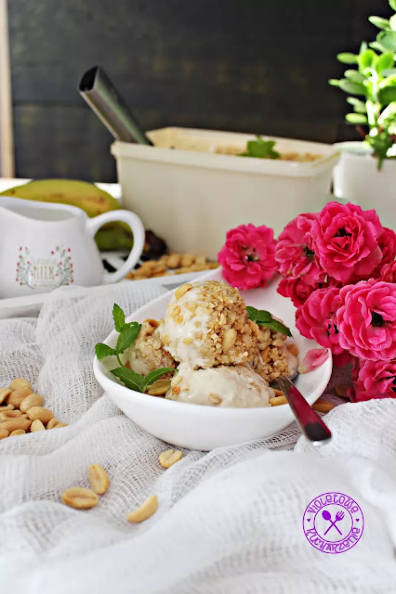 Domowe lody bananowe ze solonymi orzeszkami ziemnymi ze sklepem Bee.pl w tle