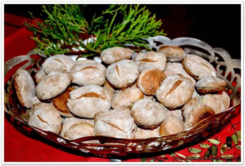 Advent anise "peanuts" Składniki. 2 jajka 10 dag cukru kryształ 10 dag cukru pudru 20 dag maki pszennej 3 łyżki zmielonych migdałów 1/4 łyżeczki pieprzu 2 gwiazdki anyżu Wykonanie. Jajka ubić z cukrem na gładką masę. Dodać cukier puder, pieprz, mąkę i zmielone orzechy .Zagnieść ciasto. Przykryć i odstawić na 2 h w ciepłe miejsce. Na stolnicy oprószonej mąką uformować wałki o średnicy 1 cm. Łyżeczką odcinać kawałki o długości 3 cm, powinny przypominać orzechy włoskie. Mnie to różnie wychodzi....