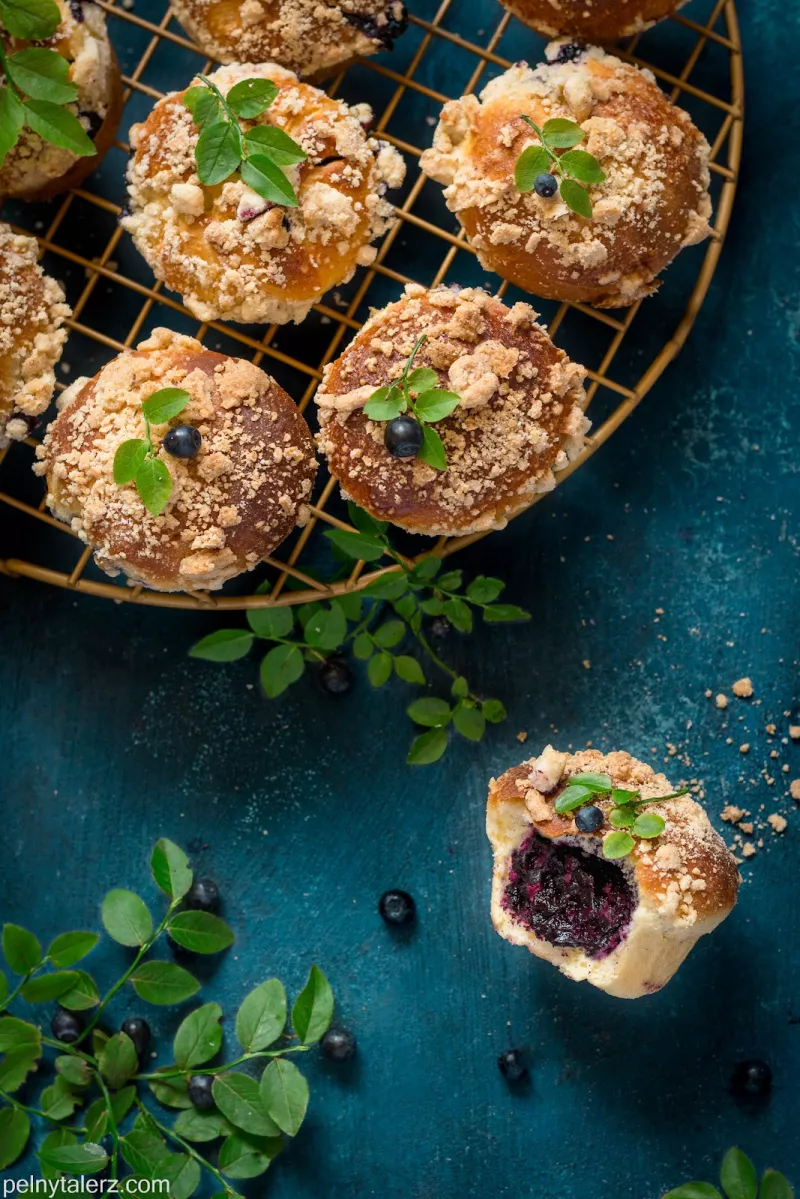 Witajcie! Mam coś pysznego. Minijagodzianki z foremki na muffinki są delikatne i mięciutkie, no i oczywiście, wypełnione jagodami. JAKIE SKŁADNIKI BĘDĄ POTRZEBNE DO PRZYGOTOWANIA MINIJAGODZIANEK? mąka - na ciasto najlepiej użyć pszennej typ 550 (luksusowa lub podobna dedykowana do ciast drożdżowych), albo orkiszowej typ 630-700, natomiast do kruszonki polecam dodać krupczatkę, która doda więcej kruchości i chrupkości drożdże - moim zdaniem najlepsze będą świeże, ale suszone też dadzą radę; je...