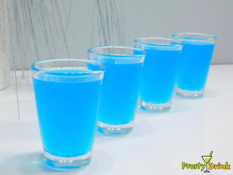 Blue kamikaze - Niebieskie kamikadze to jeden z najpopularniejszych imprezowych shotów. Blue kamikaze podany zazwyczaj jest w 4 kieliszkach a wypicie ich jeden po drugim do rozsądnych nie należy. Składniki (na 4 kieliszki) : 100 ml wódki 50 ml soku z cytryny 50 ml Blue Curacao lód Przygotowanie : Do szejkera wkładamy 3-4 kostki lodu, wlewamy wódkę, sok z cytryny oraz Blue Curacao. Wszystko mieszamy i przelewamy do kieliszków.