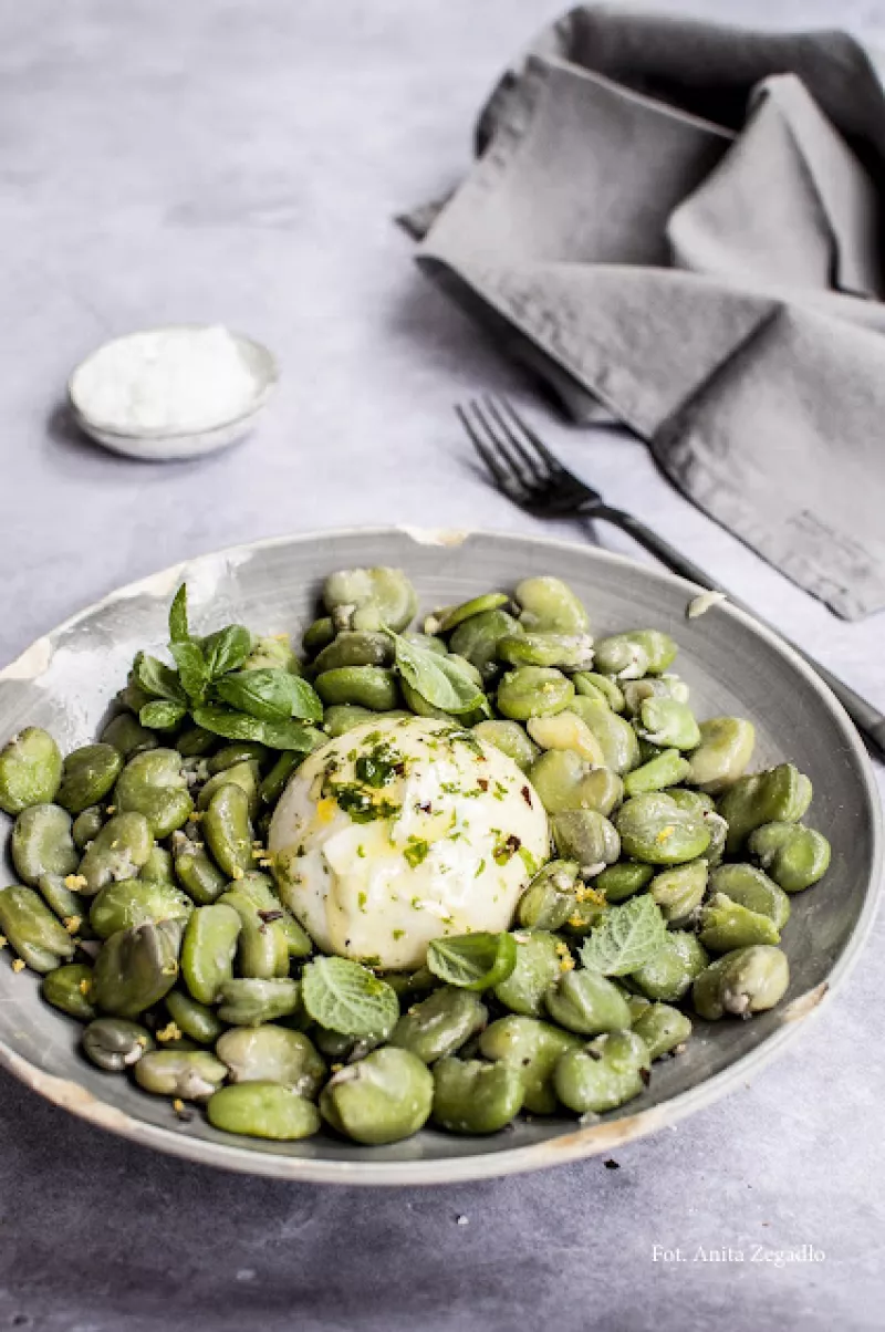 Bób z serem burrata