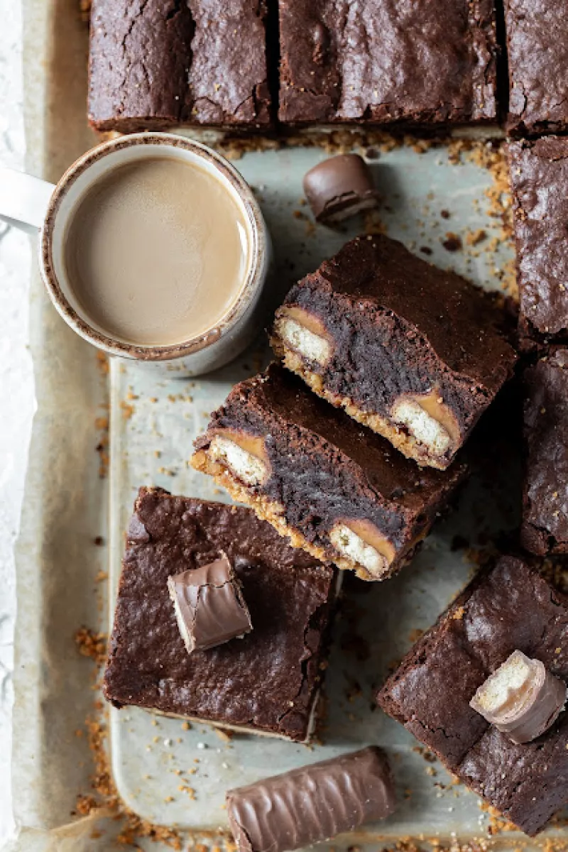 Źródło: http://opowiescizpiekarnika.blogspot.com/2025/09/brownie-batonikami-twix.html