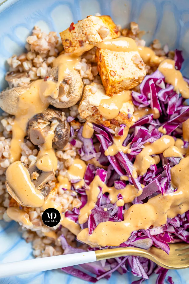 Źródło: https://www.mojadelicja.pl/buddha-bowl-z-tofu-kasza-gryczana-i-pieczarkami/