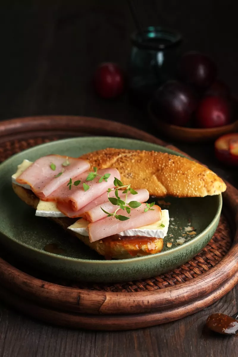 Chrupiąca bułka z camembertem i dżemem z fig