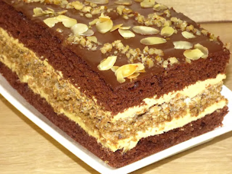 Pyszne, podzielne ciacho Cappucino z książki siostry Anastazjii. U mnie trochę ze zmianami, bo bezę kokosową wymieniłam na orzechową i dodatkowo ciacho nasączyłam kawą. Zapraszam:)Składniki blaszka 25/35:Biszkopt:7 dużych jajek, 1 szklanka cukru,140 mąki pszennej, 50 g kakao, Beza orzechowa:5 białek, 200 g cukru, 250 g orzechów włoskich, 1 łyżka mąki ziemniaczanej, 1 łyżka mąki pszennej, Krem:500 ml mleka, 5 żółtek,3/4 szklanki cukru,2 łyżki mąki pszennej, 1 budyń waniliowy, 1 cukier wanilio...