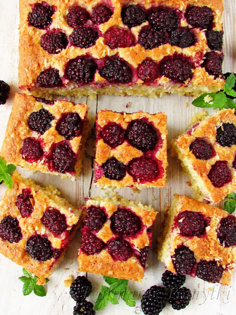 Źródło: https://kulinarnepomylki.blogspot.com/2019/08/ciasto-kokosowe-z-jezynami.html