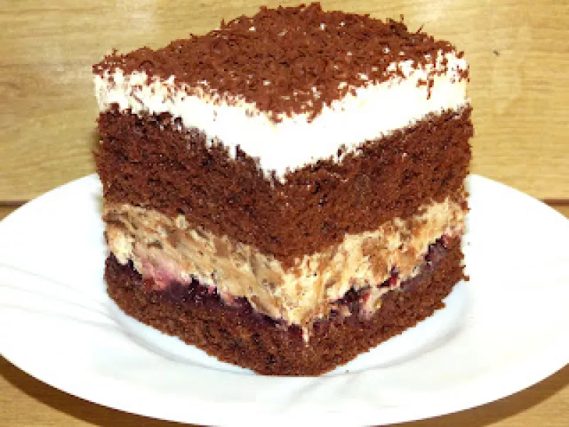 Lubicie cukierki,, Michałki"? Jeśli tak, to będziecie zachwyceni tym ciachem. Biszkopt czekoladowy, krem mascarpone z bitą śmietaną i Michałkami, przełamane kwaskowatym dżemem z czarnej porzeczki, a na wierzch ubita śmietana. Palce lizać!Składniki blaszka 25/35 :biszkopt:7 dużych jajek, 1 szklanka cukru, 140 g mąki pszennej,50 g kakao, krem michałkowy:250 g czekoladowych cukierków michałków,500 g mascarpone,200 ml śmietanki 30%,2 łyżki cukru pudru,2 łyżeczki kawy rozpuszczalnej, rozpuszczone...