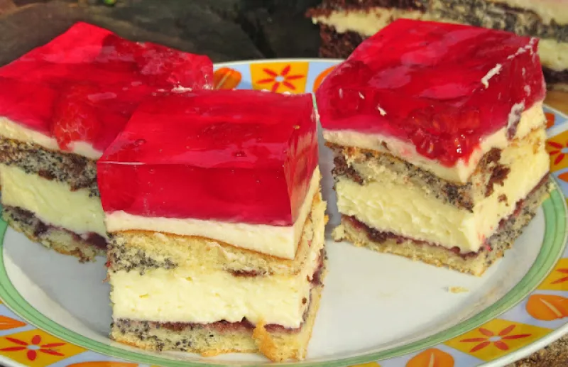 Cześć Kochani, dziś zapraszam na kolejne pyszne i bardzo efektowne ciasto Jest łatwe do zrobienia a smakuje po prostu rewelacyjnie. Mowa o cieście Popapraniec :) Składa się z trzysmakowego ciasta, które wykładamy naprzemiennie do blaszki, co powoduje, ze po upieczeniu jest kolorowe i pięknie wygląda jedna część jest z makiem, druga z kakao a trzecia z kokosem lub pozostaje jasna Spody przełożone są dżemem oraz kremem, na górze ciasta mamy galaretkę z malinamiWspaniałe ciasto na każdą okazję,...