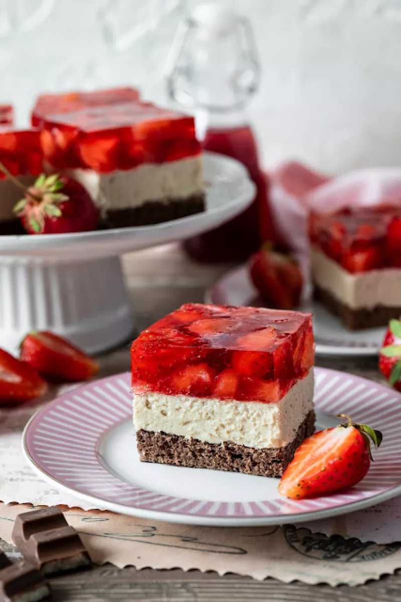 Źródło: http://opowiescizpiekarnika.blogspot.com/2025/06/ciasto-z-kremem-kinder-i-truskawkami.html