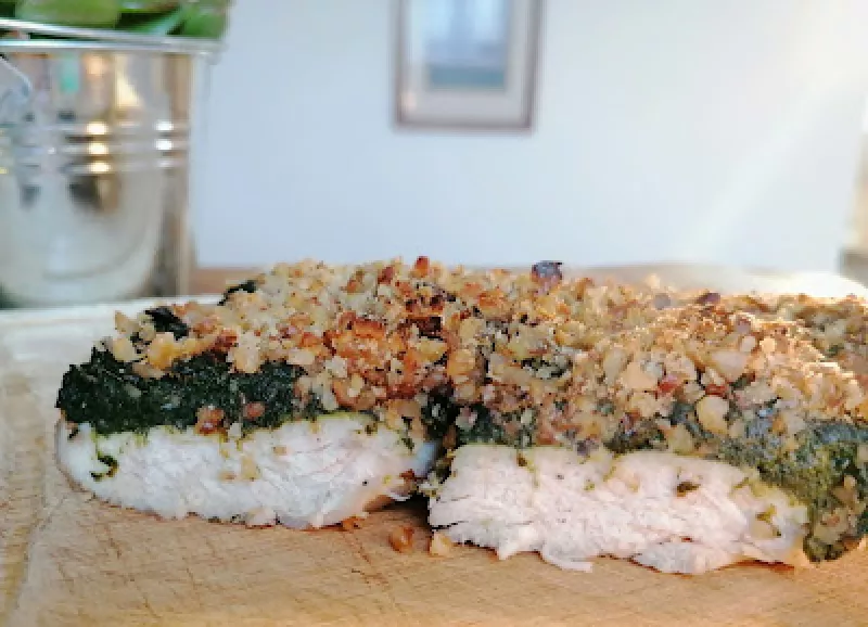 Cytrynowy kurczak pod szpinakiem i orzechami