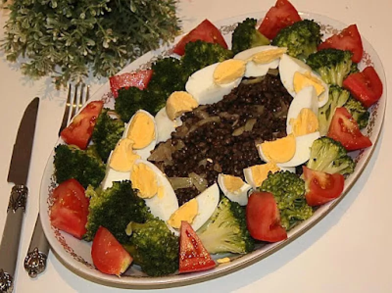 Czarna soczewica z brokułem