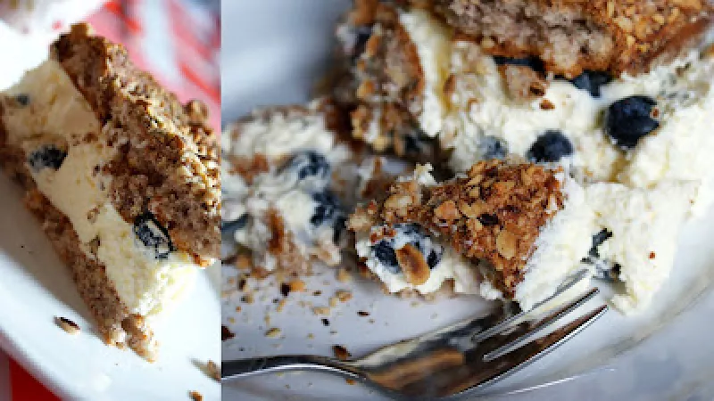Dacquois orzechowe z cytrynowym kremem i borówkami amerykańskimi