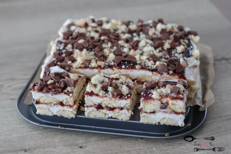 Mocno czekoladowe ciasto konsystencją przypominające brownie wypełnione ciasteczkami oreo. Przepis …