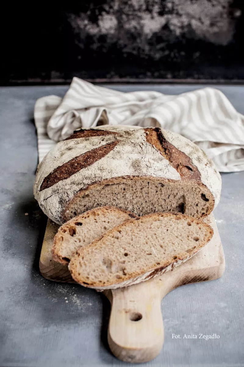 Nie ma nic bardziej satysfakcjonującego niż domowy chleb – chrupiący z wierzchu, sprężysty w środku, pachnący głęboką fermentacją i prażonym zbożem. Tym razem przygotowałam bochen z ekologicznej mąki pszennej typu 1100 Demeter, wykorzystując zakwas orkiszowy (można też żytni) – zgodnie z wcześniejszymi metodami, które znacie już z mojego bloga.To wypiek, który łączy tradycyjne podejście do pieczenia z najwyższej jakości składnikami. Ma zwartą, ale lekką strukturę, delikatnie kwaśny posmak i d...