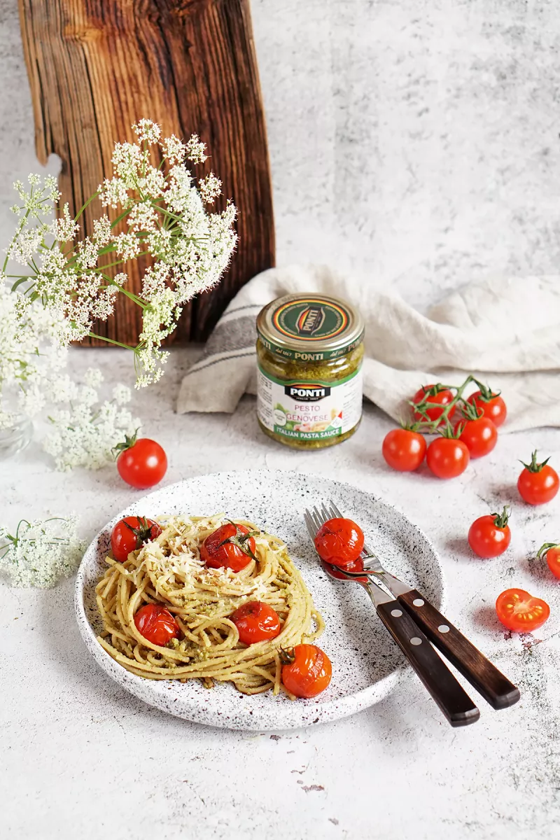 Ekspresowy makaron z pesto i pomidorkami