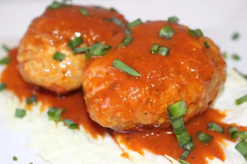 Schab w cebulowo pomidorowym sosie z gorgonzolą