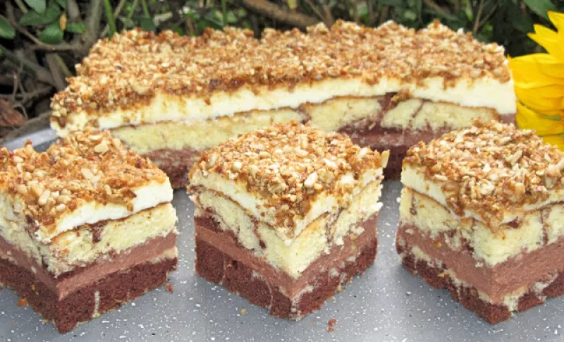 HIT Ciasto Noce i dnie-dwukolorowe z kremem i słonecznikiem, łatwe i efektowne +FILM