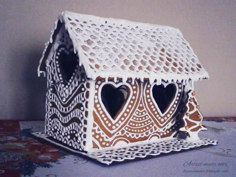 I jak tam? Pierniki upieczone? Prezenty popakowane? :) U mnie aura Świąt jest już coraz bardziej wyczuwalna. Choinka dumnie stoi na swoim miejscu, w domu pachnie piernikami i makiem a ja zaraz uruchamiam piekarnik i biorę się za pieczenie ciast. I prezenty spakować muszę, bo jeszcze tego nie zrobiłam :) Mogę, za to, podzielić się z Wami moją piernikową chatką (w sumie to zrobiłam dwie, ale jedną podarowałam i zapomniałam zrobić zdjęć :) ) i niewielką częścią polukrowanych pierniczków (twórcz...