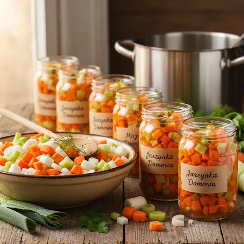 Jarzynka do słoików (mix warzyw) – evergreen na zimę!Czy jest coś lepszego niż pełen witamin słoik z jarzynką, który przypomina o smaku lata w środku zimy? Domowa jarzynka do słoików to uniwersalny dodatek do obiadu, który idealnie pasuje do ziemniaków, kaszy, ryżu czy mięs. To proste w przygotowaniu, zdrowe i smaczne rozwiązanie, które pozwoli Ci cieszyć się ulubionymi warzywami przez cały rok.Dlaczego warto przygotować własną jarzynkę?Pełnia smaku: Warzywa użyte do tego przepisu są świeże ...