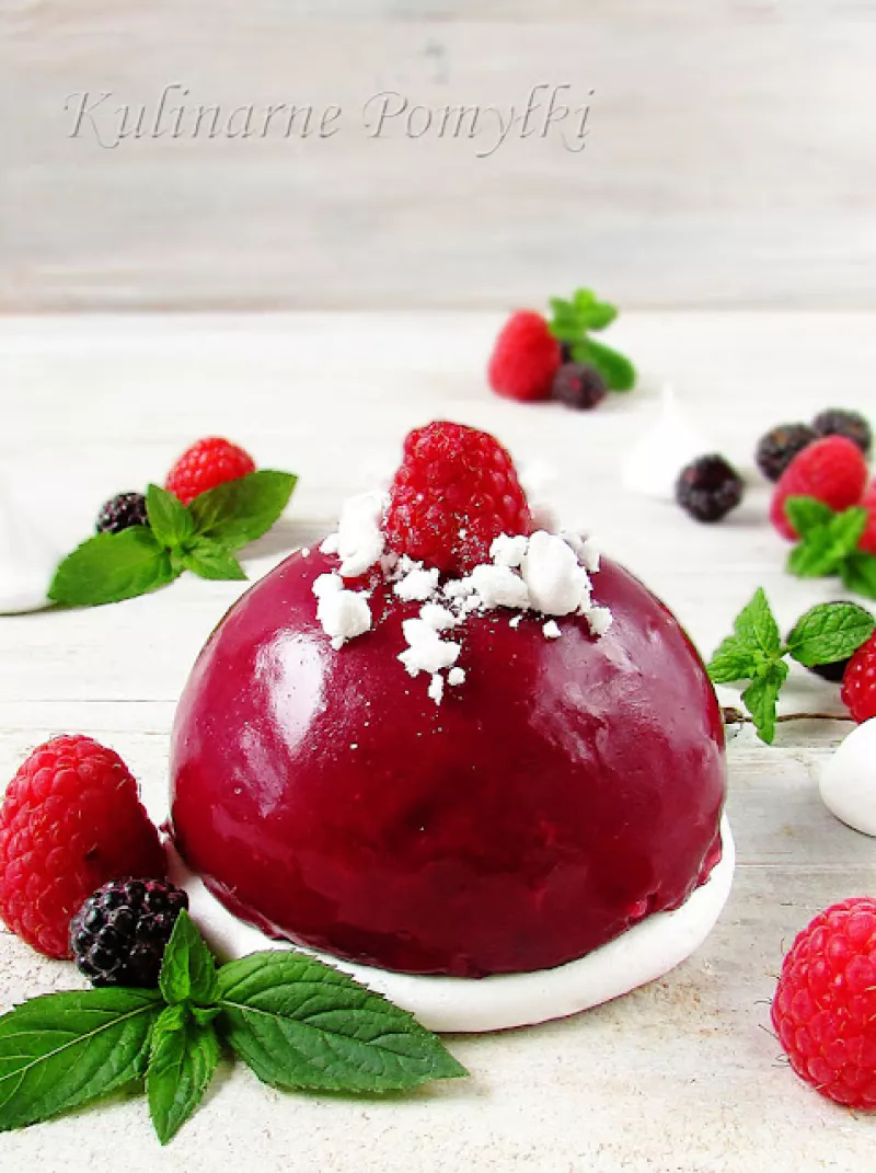 Idealne owocowe wyspy. Jeżynowy i malinowy, rozpływający się w ustach sernik. Puszysty i delikatny, na chrupiącym bezowym spodzie, z ukrytą w środku maliną. Orzeźwiający deser pokryty lustrzaną, malinową polewą z białej czekolady. Idealny na upalne dni. Do wykonania deseru będą potrzebne foremki w kształcie kopułek o średnicy 7 cm i wysokości około 4,5 cm. Składniki na 12 sztuk Składniki na spody bezowe: - 2 białka - 120 g drobnego cukru - 1 łyżeczka soku z cytryny - szczypta soli Blaszkę wył...