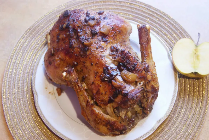 Kaczka pieczona z jabłkami i suszoną żurawiną