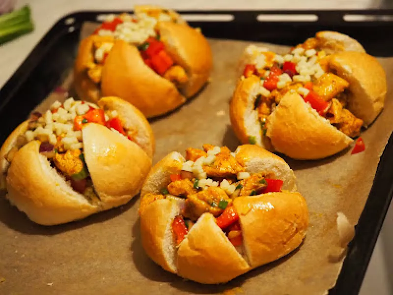 Kajzerki nadziewane mięsem i warzywami