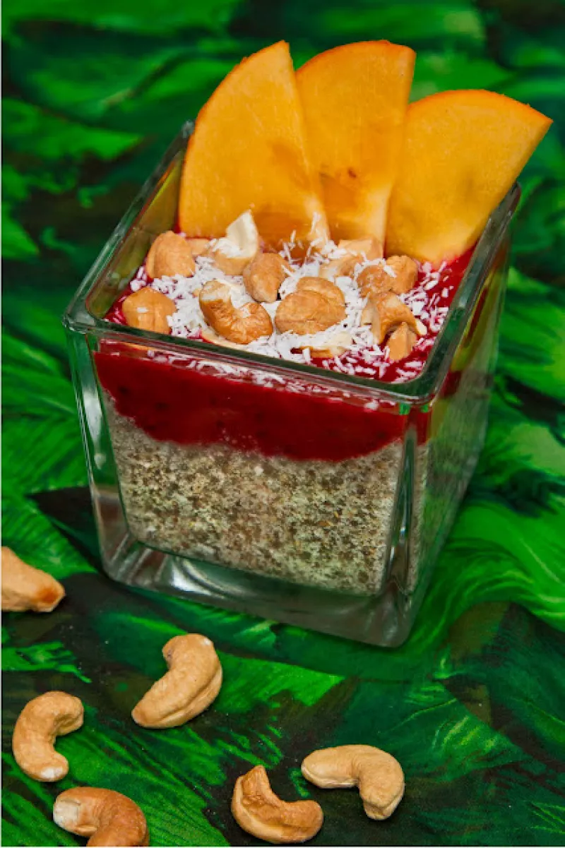 Kokosowy pudding chia z musem z czerwonych owoców