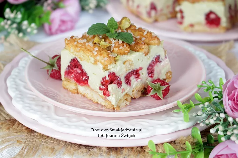 Źródło: https://domowysmakjedzenia.pl/2025/08/12/kremowa-rozkosz-pistacjowa-z-malinami-na-slomce-ptysiowej/