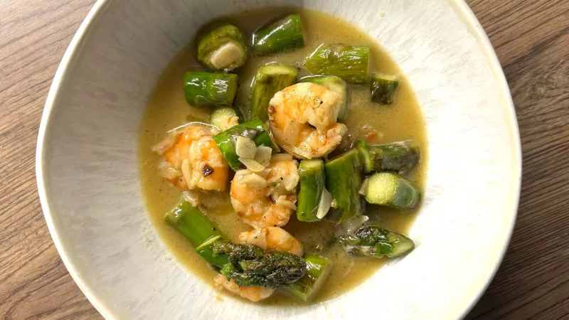 Krewetki ze szparagami w białym winie i maśle