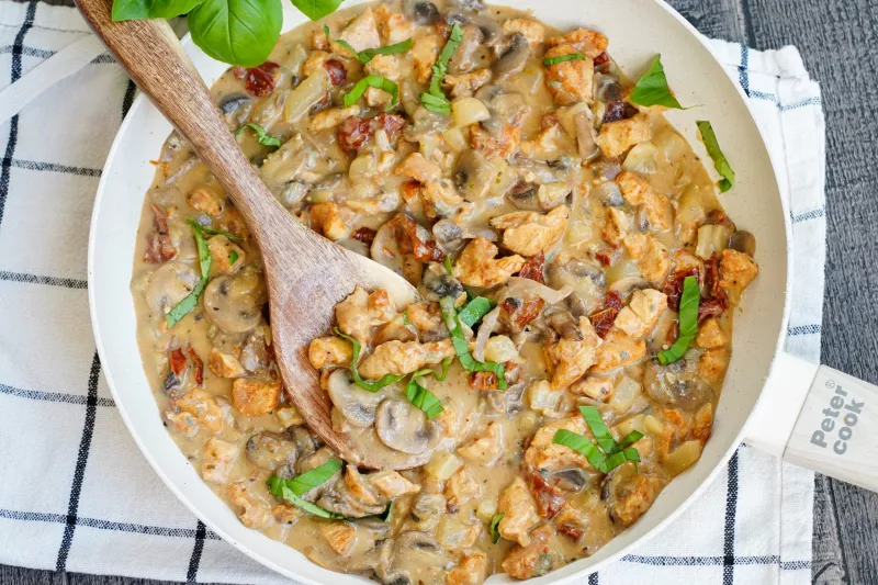 Kremowy kurczak w sosie z pieczarkami, gruszką i suszonymi pomidorami. Prosty i szybki przepis na pyszny obiad z gorgonzolą, gotowy w mniej niż 30 minut! Artykuł Kurczak w sosie z pieczarkami i gruszką pochodzi z serwisu Przepiski.pl.
