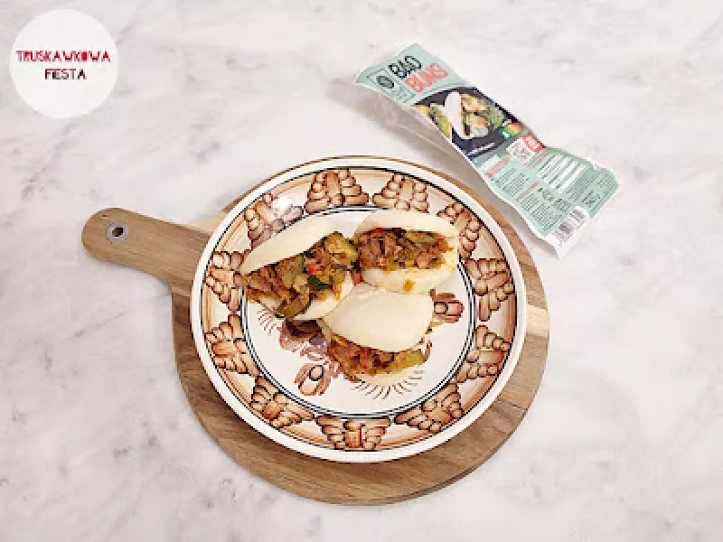 Leczo warzywne z kiełbasą w bułeczkach bao