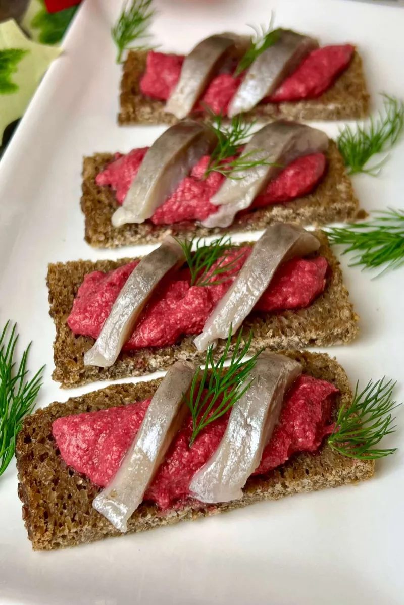 Buraczany krem z fetą i śledź na chlebie — prosta, świąteczna przystawka. Artykuł Śledź z kremem z buraków i fety – efektowna świąteczna przystawka pochodzi z serwisu Pieprzyć z Fantazją.