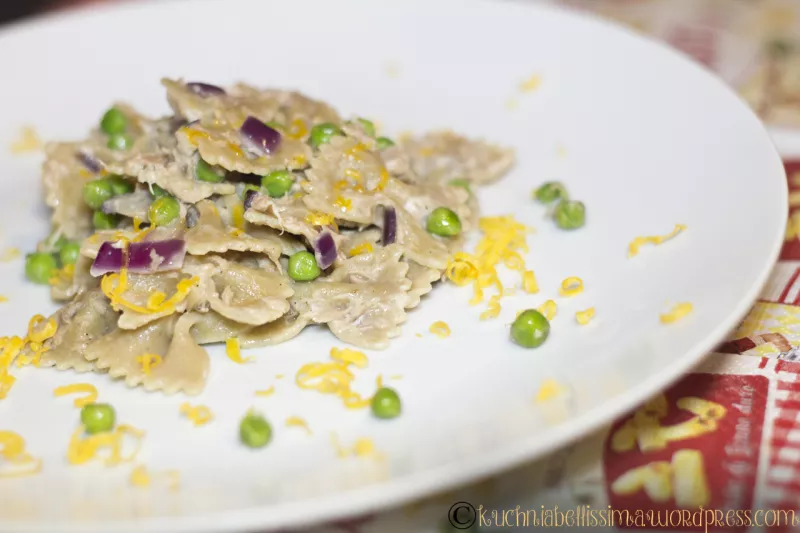Dwa dni temu został obchodzony Światowy Dzień Makaronu. Muszę przyznać, że całkiem wyleciało mi to z głowy ponieważ ostatnio mój mąż stwierdził, że jemy za dużo makaronu ( zdziwiłam się słysząc takie słowa od Sycylijczyka ). On już nie chce go tyle jeść i prosił, żebyśmy nieco zmienili dietę. I tak szczerze dopiero poźnym popołudniem zobaczyłam, że odbywał się owy i postanowiłam jednak zrobić jakieś makaronowe danie na kolację. Użyłam jednak makaronu razowego ponieważ jest produkowany z mąki...