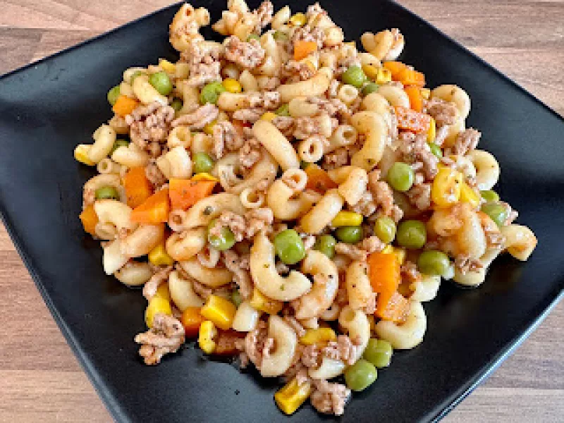 Makaron z mięsem mielonym i warzywami