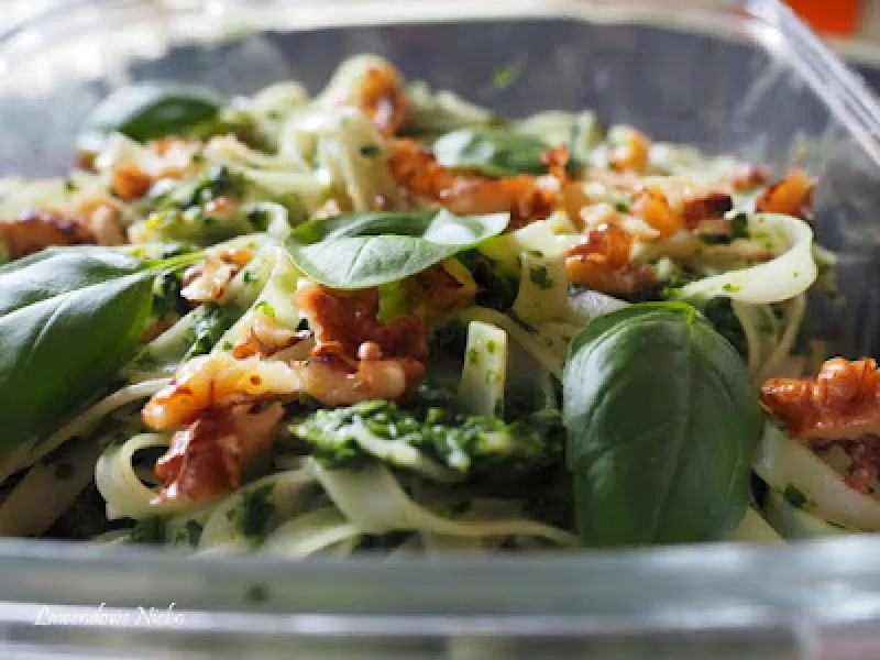 Makaron ze szpinakiem i orzechami