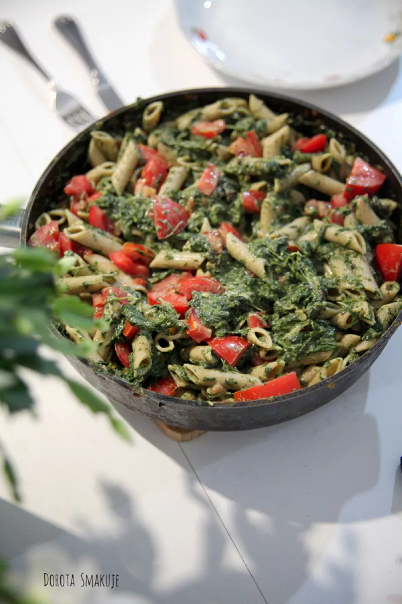 Źródło: https://www.dorotasmakuje.com/2025/11/makaron-ze-szpinakiem-i-pomidorem