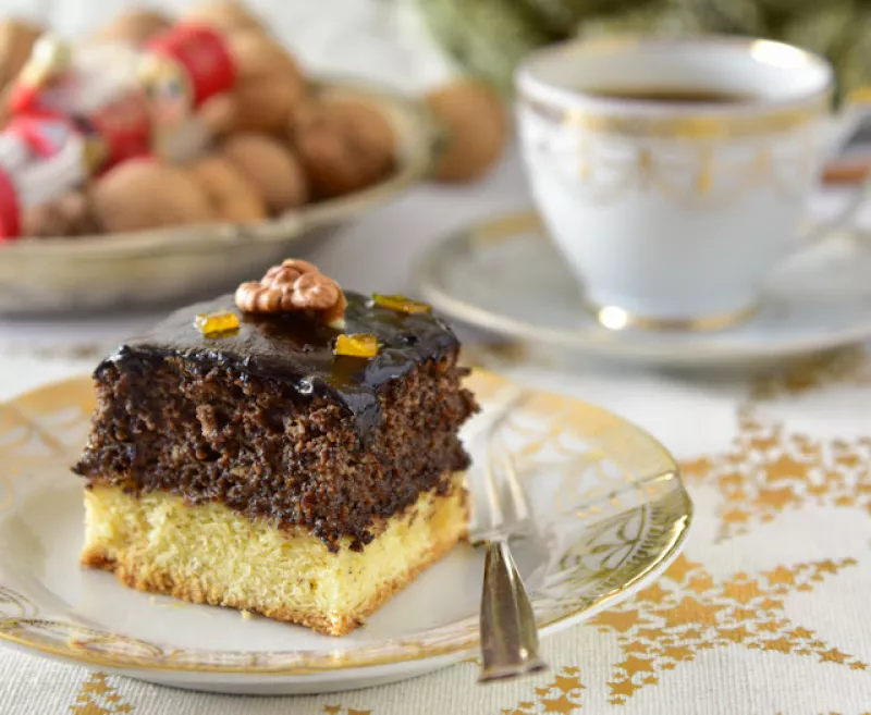 Świąteczny makowiec na kruchym spodzie, z polewą czekoladową. Przepyszne bożonarodzeniowe ciasto. Kieliszek rumu wspaniale je uperfumuje.Składniki:Ciasto:1/2 kg mąki tortowej250 g masła1 łyżeczka proszku do pieczenia1 szklanka cukru8 g cukru waniliowego3 żółtka1 łyżka gęstej śmietanyMasa makowa:1/2 kg maku niebieskiego4 łyżki kaszy manny3 szklanki mleka125 g masła1/2 szklanki miodu4 jajka rozmiar M6 łyżek cukru8 g cukru waniliowego1/2 szklanki orzechów włoskich posiekanych1/2 szklanki migdałó...