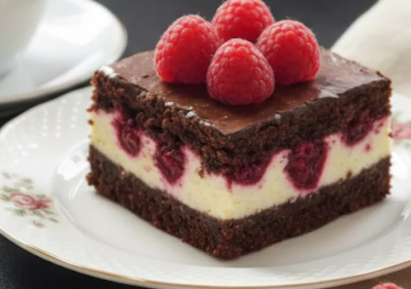 Malinowe Sernikobrownie – połączenie czekolady, sera i malin, które rozpływa się w ustachTo ciasto to prawdziwa rozkosz dla podniebienia! Malinowe Sernikobrownie łączy w sobie wszystko, co najlepsze – intensywnie czekoladowe, wilgotne brownie, aksamitną masę sernikową oraz soczyste maliny, które dodają całości świeżości i lekkości. Każdy kęs to harmonia smaków, które sprawiają, że trudno poprzestać na jednym kawałku.Delikatne, kremowe wnętrze i głęboki czekoladowy aromat sprawiają, że to cia...