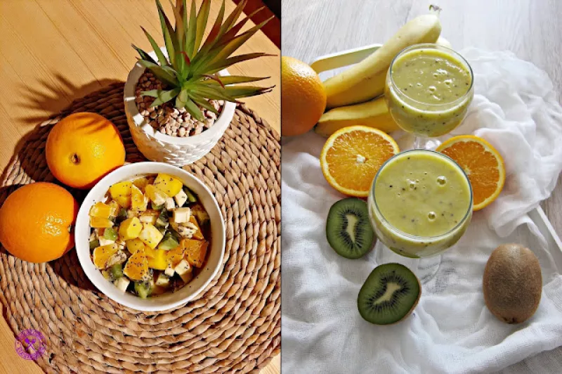 Pyszny, kremowy pomysł na koktajl. Do przygotowania możemy również wykorzystać zwykłe mleko lub jogurt. Taki koktajl to samo zdrowie. Warto codziennie wypić przynajmniej szklankę takiej bomby witaminowej. 1 szklanka mrożonego lub świeżego mango 1 banan 1 pomarańcza 1 kiwi 1 łyżka nasion chia 1 szklanka mleka migdałowego Mango rozmrażamy, jeżeli mamy świeże to obieramy i kroimy na cząstki. Banana, pomarańczę i kiwi obieramy ze skórek. Kroimy na mniejsze kawałki, wrzucamy z mango do blendera. D...