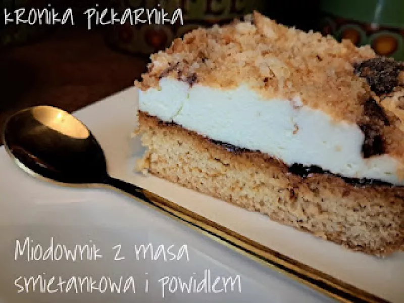 Źródło: https://www.kronikapiekarnika.pl/2025/11/miodownik-z-masa-smietankowa-i-powidem.html