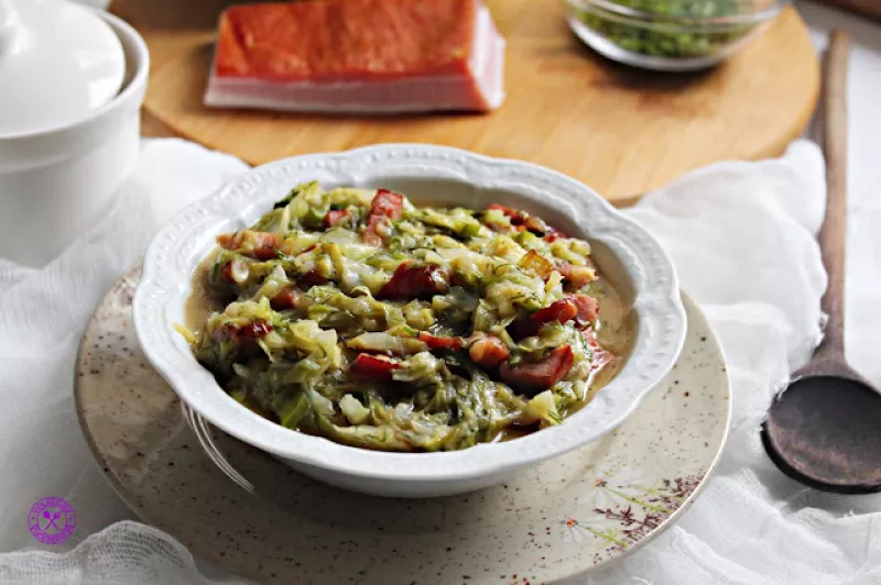 Młoda kapusta z boczkiem i koperkiem