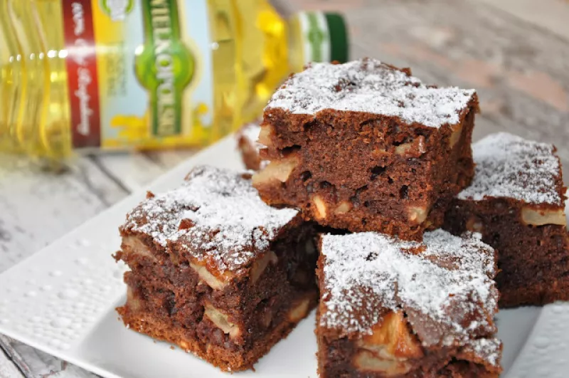 Murzynek to nieco zapomniane ciasto. Dla mnie i pewnie nie tylko to smak dzieciństwa. Proste i szybkie w przygotowaniu. #OlejWielkopolski zachęca do eksperymentów. Tak więc, tradycyjne, dobrze znane ciasto dziś w nowej odsłonie- mąkę pszenną zastąpiłam razową orkiszową. Margarynę, zmieniłam na olej wielkopolski. Oprócz jabłek dodałam gruszkę. A orzechy włoskie wymieniłam na nerkowce. Dzięki temu ciasto jeszcze bardziej zyskało na smaku. #OlejKonwenanse Składniki: 3 jajka 2 szklanki mąki razow...