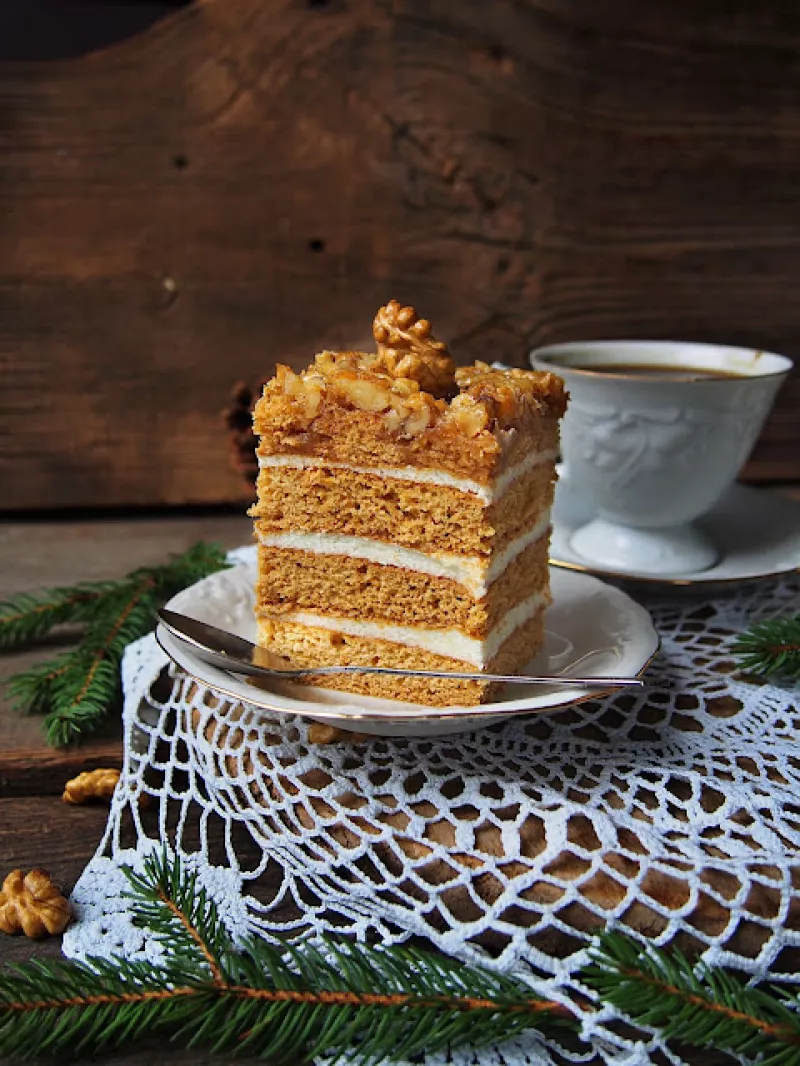 Orzechowy miodownik bez jajek mięciutki, puszysty i elegancki