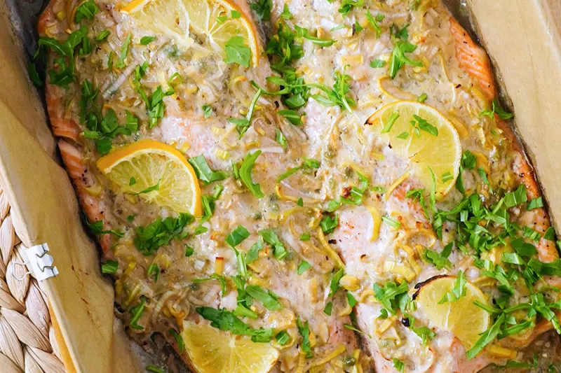 Łosoś pieczony w porach