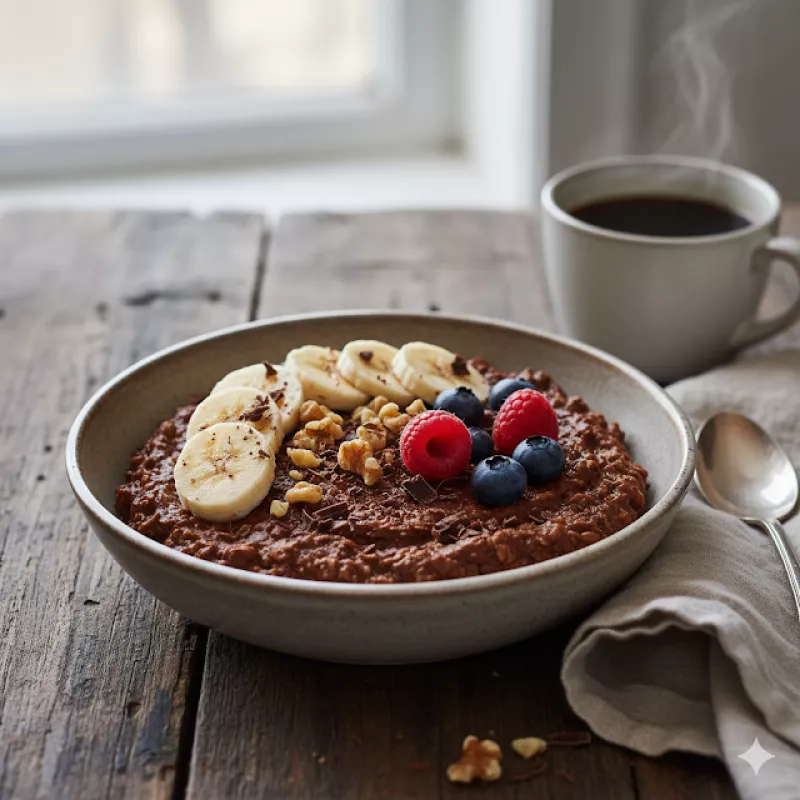 Owsianka "Brownie" Kakao + Banan – Śniadanie/Fit, Które Pokochasz!Kto powiedział, że zdrowe śniadanie nie może smakować jak deser? Nasza owsianka "brownie" to dowód na to, że można połączyć przyjemne z pożytecznym! Bogata w kakao, naturalnie słodzona bananem i sycąca dzięki płatkom owsianym, to idealny pomysł na pyszne i fit śniadanie, które dostarczy Ci energii na cały poranek. Zapomnij o nudnych owsiankach – ta wersja smakuje jak pyszne, czekoladowe ciastko, a jest w pełni wartościowym pos...
