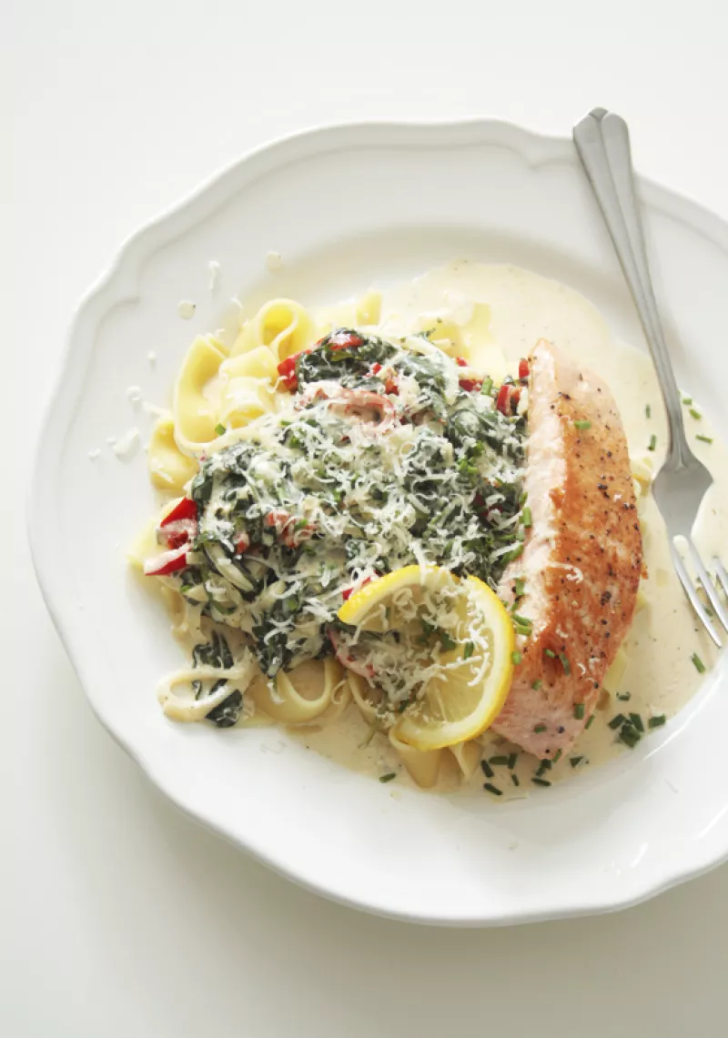 PAPPARDELLE ZE SZPINAKIEM W ŚMIETANOWYM SOSIE Z ŁOSOSIEM