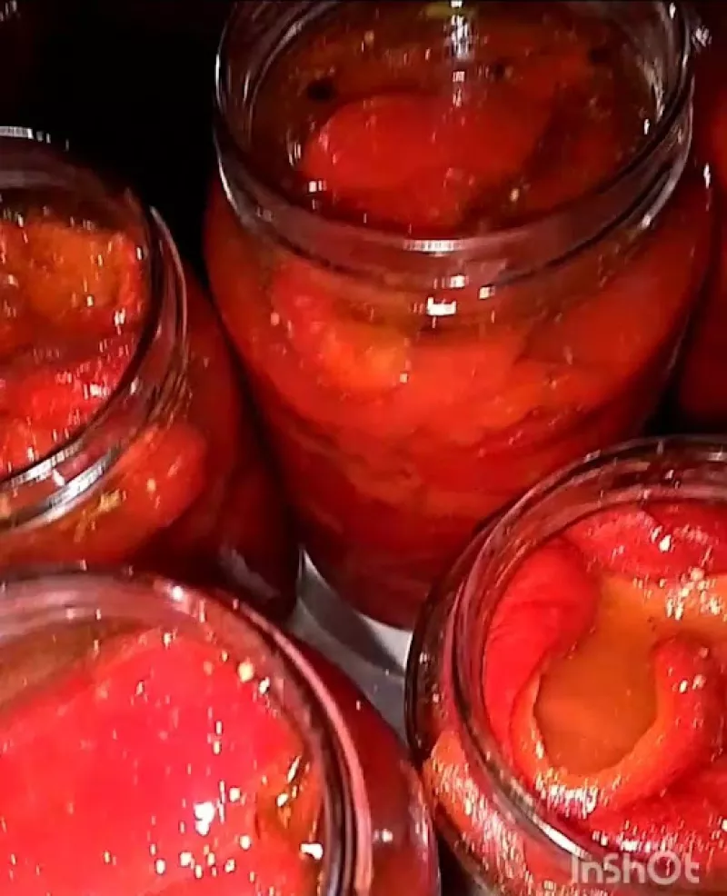 Składniki: recipe:📣📣📣papryka 5 kg, usunąć gniazda nasienne, pokroić na duże kawałki i dobrze opłukać, wsypać do szybkowara (9 litrowy), wlać 2 szklanki wody, zamknąć i po zasyczeniu pary gotować 15 minut, gdy ciśnienie opadnie papryki układać do wyparzonych słoików🌶🆗 Marynata: wodę z gotowania papryki wlać do garnka, dolać 2 szklanki wody, olej rzepakowy 1,5 szklanki, ocet 10% 3/4 szklanki, wsypać 1 szklankę cukru, 2 łyżki soli, 1 łyżeczka papryki ostrej, 1 łyżeczka pieprzu mielonego, 1 ...