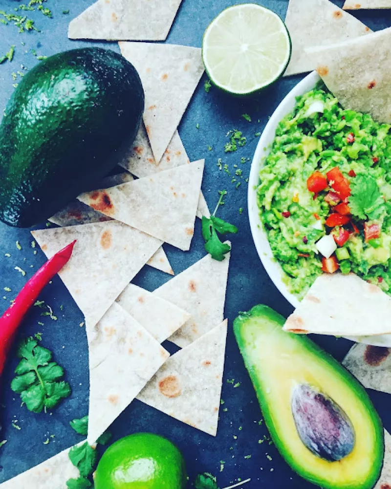 Poniższy przepis zrodził się dawno temu w kraju ,,Super size me";) Nie wiedziała co począć z napoczętą paczką 20 tortilli zakupioną przez małżonka wyznającego filozofię ,,more is more". Nie znoszę marnowania jedzenia, ale wizja codziennego burrita też mi nie pasowała. Akurat wpadali znajomi, więc pocięłam stos tortilli i wrzuciłam na chwilę do piekarnika. Tym sposobem powstała zdrowsza wersja chipsów, którą uwielbiają wszyscy. Chipsy te są świetnym dodatkiem do guacamole, przepis na ,,odchud...