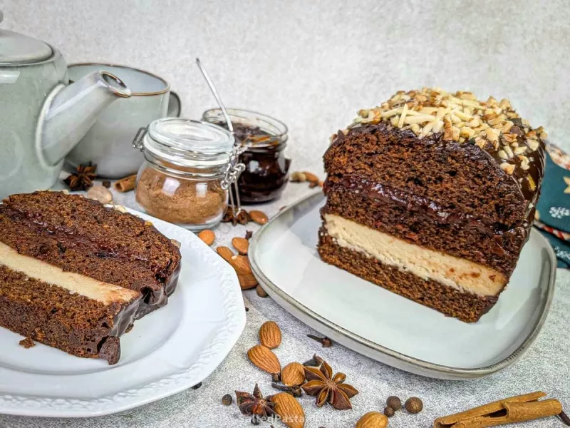 Piernik świąteczny przekładany marcepanem i powidłami